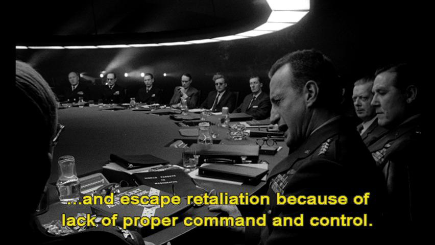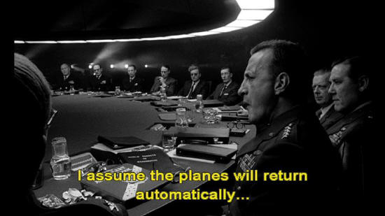 ... and escape retaliation because of lack of proper command and control. President: I assume, the planes will return automatically ... ... once they reach their fail-safe points. General Turgidson: No, sir, I'm afraid not. The planes were holding at their fail-safe points ...
