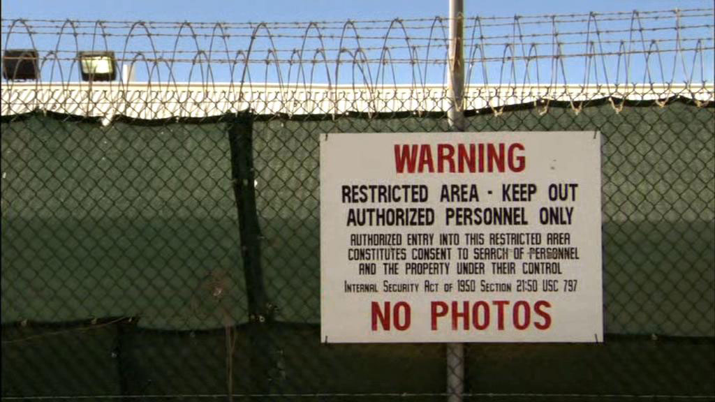 He's in solitary confinement by himself. NO PHOTOGRAPHY [Narrator] What's the problem with the press photographing them? Talking with them? Observing them? WARNING. RESTRICTED AREA. KEEP OUT. AUTHORIZED PERSONNEL ONLY. NO PHOTOS. [Brigadier General Jay Hood, Commander Joint Task Force, Guantanamo 2004-2006] The desire to not provide a platform ... to have the men we're holding espouse vile, Islamic rhetoric. A violent, vile, Islamic rhetoric! GUANTANAMO BAY GIFT SHOP (Displaying violent vile Illuminati rhetoric, including Skull & Bones, Dragon, & Maltese Cross)
