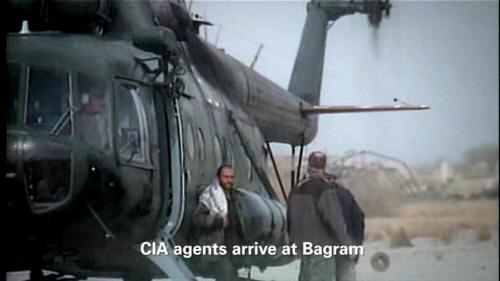 [Senator John McCain] Is it still permissible to use a wet towel and dripping water to induce the misperception of suffocation? [Lt. General Randall M. Schmidt, Author of "Schmidt Report"] The use of the wet towel, dripping water to induce the misperception of suffocation was one of the techniques requested by the JTF in their laundry list given up. It was never approved. It has never been a technique approved. [Professor Alfred McCoy, author A Question of Torture] One of the techniques that made the transition from the regime of the physical to the psychological -- in fact the only one -- was waterboarding. Because in the medieval era, under the Inquisition, it was done because of its horrible, physical aspects. It was done to purge and punish the heretic. You force water down the throat of the victim. The victim thinks that he's drowning. It's horrible. Your body tells you that you're dying. CIA AGENTS ARRIVE AT BAGRAM Right after 9/11, the CIA got approval from the White House for waterboarding. [Narrator] An early test case involved the interrogation of Ibn Sheikh al Libi, a man suspected of being the Emir of an al Qaeda training camp.