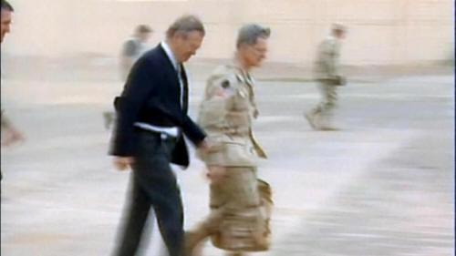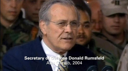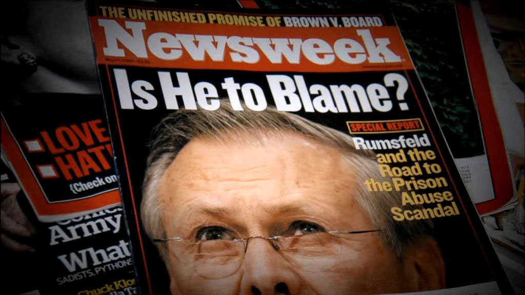[Narrator] In the wake of media attention surrounding Abu Ghraib, the military began a series of investigations. [Secretary of Defense Donald Rumsfeld, Abu Ghraib, 2004] The people who engaged in abuses will be brought to justice. The world will see how a free system, a democratic system, functions and operates transparently with no cover-ups. Newsweek: Is He to Blame? Special Report: Rumsfeld and the Road to the Prison Abuse Scandal [Rear Admiral John Hutson, (ret) Judge Advocate General] The Secretary and others have said, "Well, you know, we've conducted 12 investigations" -- each and all of which were geared to looking downward, down toward Lynndie England and Graner, and not looking up. Pfc. Lynndie England, sentenced to 3 years in prison.