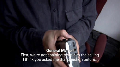 General Dan McNeill, Commander of Coalition Forces, Afghanistan 2002-2003 [Carlotta Gall] Did the treatment they received in those rooms cause the death of these two men? [General Dan McNeill, Commander of Coalition Forces, Afghanistan 2002-2003] First, we're not chaining people to the ceiling. I think you asked me that question before. [Carlotta Gall] "First, we're not chaining people to the ceiling." That's what he says. [Narrator] Carlotta Gall is a New York Times journalist based in Kabul. Unsatisfied with the Military's explanation of the two deaths at Bagram, she set out to investigate.