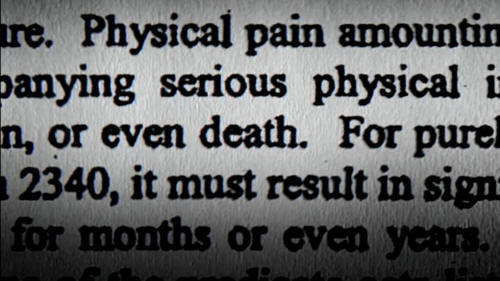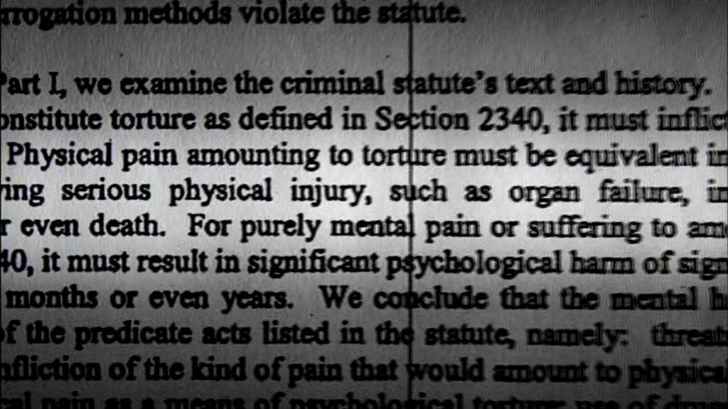 interrogating prisoners ... would not be accused of torture ... John Yoo co-authored a memo that would clarify the meaning of the term. [Senator Carl Levin, Senate Armed Services Committee] The only prohibited acts would be extreme acts ... which are equivalent to serious physical injury, such as organ failure, impairment of bodily functions ... or even death. That's an illegal memo. That's the so-called "torture memo." [Alberto Gonzales, Attorney General Confirmation Hearing] That was an arguable interpretation of the law.