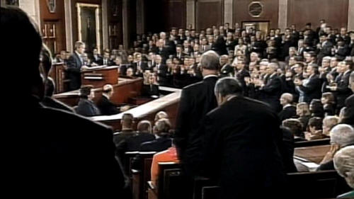 but still would benefit from the rule that the United States Military ... has ultimate say and control over any prisoners held outside the country. ["President" George W. Bush] One by one ... the terrorists are learning the meaning of American "Justice." STANDING OVATION FROM THE MOB CONGRESS