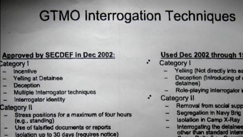 and he is the genesis for the request by the Joint Task Force at Guantanamo for more techniques that might be able to get past his resistance training. [Narrator] In September 2002, John Yoo and Alberto Gonzales ... traveled to Guantanamo. Soon after their visit ... and just before Dilawar's arrival at Bagram ... Donald Rumsfeld personally approved a new menu of psychological interrogation techniques for use on Mohamed al-Kahtani. Exactly how the techniques would be applied was often left to the imagination of the interrogators. [Lt. General Randall M. Schmidt, Author of "Schmidt Report"] It was California avocado freestyle ... I mean it was just a free for all (about the al-Qahtani interrogation).