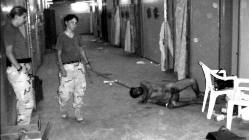 A WHORE [Gita Gutierrez, Lawyer for Mohammed al-Qahtani] He was subjected to what I would call "sexual assault" by female interrogators. LOG PAGE 51: HE WAS LAID OUT ON THE FLOOR SO I STRADDLED HIM. [Lt. General Randall M. Schmidt, Author of "Schmidt Report"] He was forced to wear women's lingerie. There were multiple allegations of homosexuality, and that his comrades were aware of that. He was forced to dance with a male interrogator. Subject to strip searches for control measures, not for security. LOG PAGE 47: DOG TRICKS CONTINUED And he was forced to perform dog tricks. All of this to lower his personal sense of worth.
