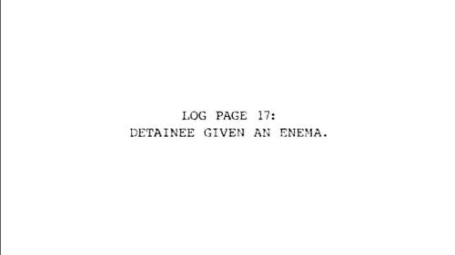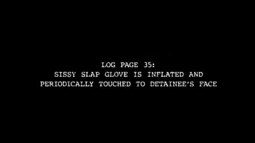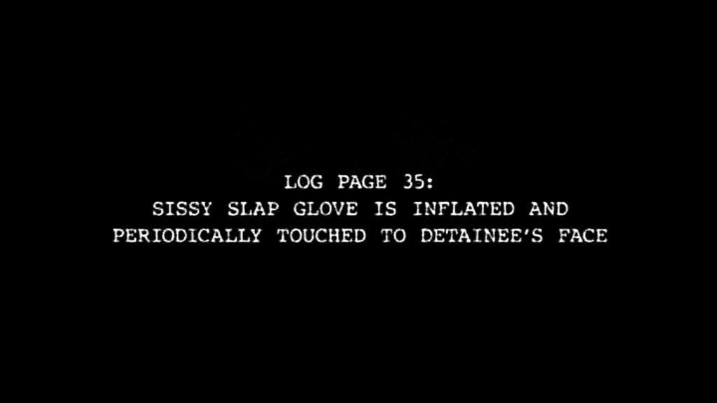 LOG PAGE 47: TOLD DETAINEE THAT A DOG IS HELD IN HIGHER ESTEEM THAN HE IS [Gita Gutierrez, Lawyer for Mohammed al-Qahtani] They've tried to characterize it as ... individual interrogators pushing the envelope, or starting to get (quote) "creative." LOG PAGE 35: SISSY SLAP GLOVE IS INFLATED AND PERIODICALLY TOUCHED TO DETAINEE'S FACE LOG PAGE 17: DETAINEE GIVEN AN ENEMA. LOG PAGE 19: CONTROL BEGAN "BIRTHDAY PARTY" AND PLACED PARTY HAT ON DETAINEE.