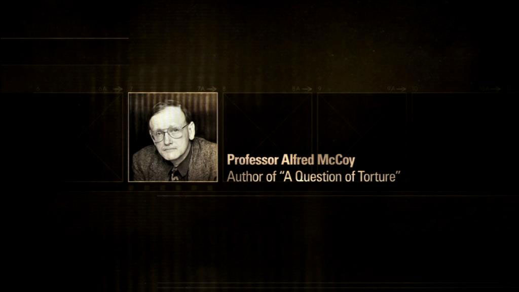 LOG PAGE 27: DETAINEE'S PULSE UNUSUALLY SLOW -- 35 BPM. LOG PAGE 27: TAKE DETAINEE TO HOSPITAL TO PERFORM CT SCAN OF DETAINEE'S BRAIN. [Professor Alfred McCoy, Author of "A Question of Torture"] Mohamed al-Kahtani, in many ways ... that single interrogation, protected interrogation, contains within it, if you will, the entire genealogy ... the entire history of CIA torture over the last 50 years. Professor Alfred McCoy, Author of "A Question of Torture" The CIA launched a mind control project, a veritable Manhattan Project of the Mind, in the 1950s. In-house, the CIA worked on exotic techniques. Hypnosis.
