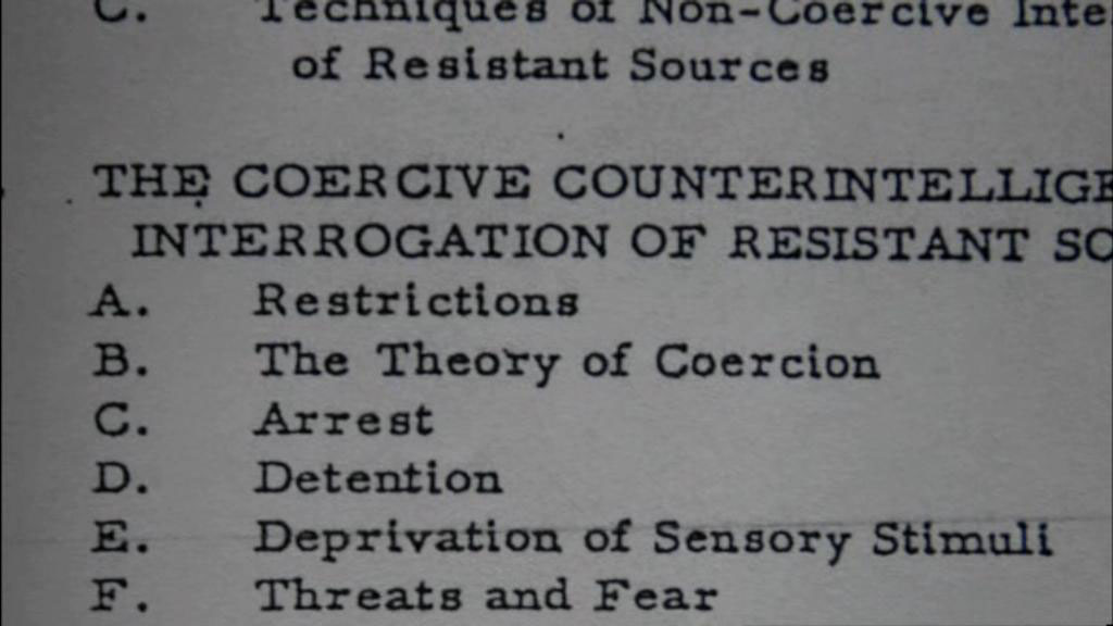 For days at a time while fluids flowed to the legs ... and they put them together in the Kubark Counterintelligence Interrogation Manual. And they propagated it around the world and through the U.S. Intelligence community. Think about what al-Kahtani was subjected to, okay? First of all, he's in dark, he's in light. He's in cold, he's in heat. What they are doing is they are attacking his universal sensory receptors.