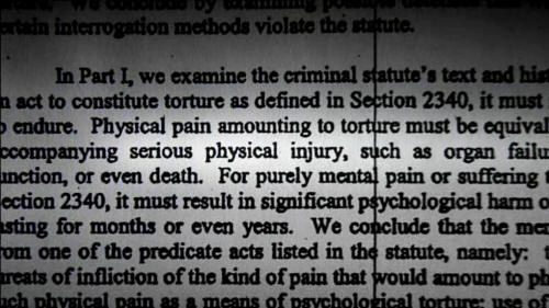 [Lt. General Randall M. Schmidt, Author of "Schmidt Report"] To our knowledge there was a considerable amount of communication up and down the chain. [Professor Alfred McCoy, Author of "A Question of Torture"] As you know, from General Schmidt's report, he concluded that these techniques ... individually did not constitute torture. But he said that the sum of these techniques ... [Lt. General Randall M. Schmidt, Author of "Schmidt Report"] The cumulative effect of simultaneous applications of numerous, authorized techniques had abusive and degrading impact on the detainee. U.S. ARMY DECLINED TO DISCIPLINE GEN. MILLER [Narrator] And he recommended that General Miller be disciplined. [Professor Alfred McCoy, Author of "A Question of Torture"] But he said it did not constitute torture. [Lt. General Randall M. Schmidt, Author of "Schmidt Report"] We made a distinction between what torture and inhumane treatment would be, given the general guidelines, and then what might be abusive and degrading. Something might be degrading, but not necessarily torture. And it may not be inhumane. It may be humiliating, but it may not be torture. No torture, no physical pain injury. There was a safe, secure environment the entire time.