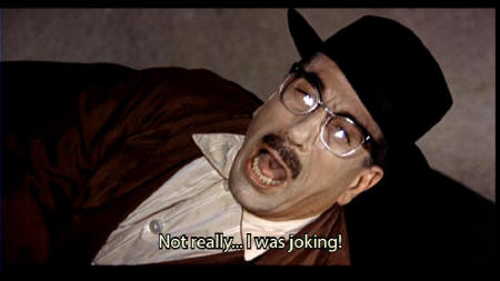 [Antonio] Let me go. I beg you, signora, let me down. I'm subject to dizziness. I have a weak heart. Anita: I'm going to eat you! [Antonio] Oh, mama, mama! Kiss kiss kiss. Ha ha ha ha. [Antonio] I can't die in this way. |