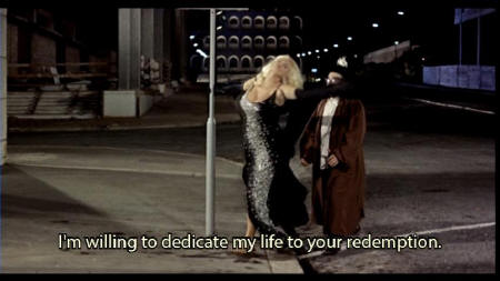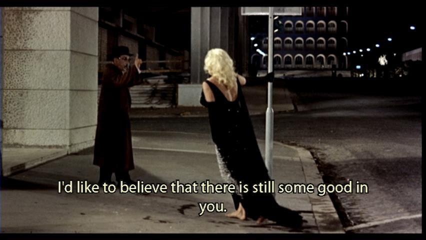 [Antonio] With all my heart, I would like to believe that there was something still good in you. Perhaps you're still not completely beyond saving. I hope so. I could help to lift you from the depths of iniquity. [Anita] Iniquity? I'd be willing to, for your sake. I'd be willing to give my entire life to it. |