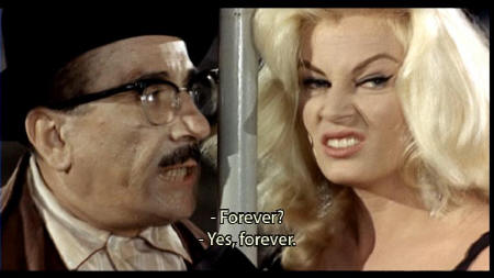 Stay with me, I beg you. [Anita] Forever? [Antonio] Yes, forever. [Anita] Oooh, what a boring idea. Maybe, I could manage for a week. |