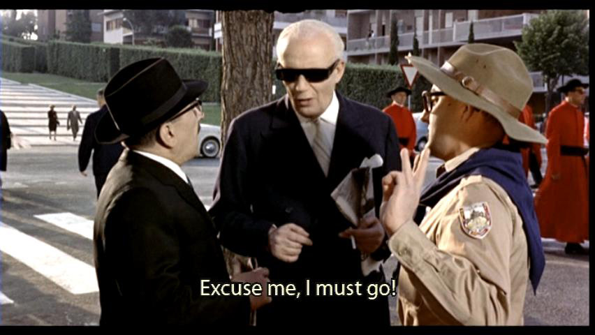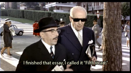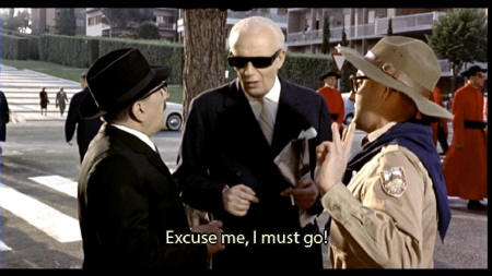 on this, and I entitled it "Lechery in Art." [Antonio] No, not smart. Lechery in art! [Man] Oh, do bring it to me. I'll be happy to publish it. [Antonio] Thank you. [Boyscout] (Stuttering) The scouts are all ready ... [Antonio] ... for me to make the medal awards, is that it? Excuse me, I must go and make the awards now to my young lads. |