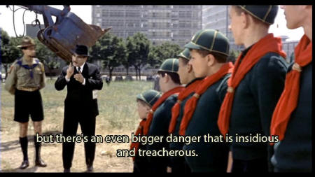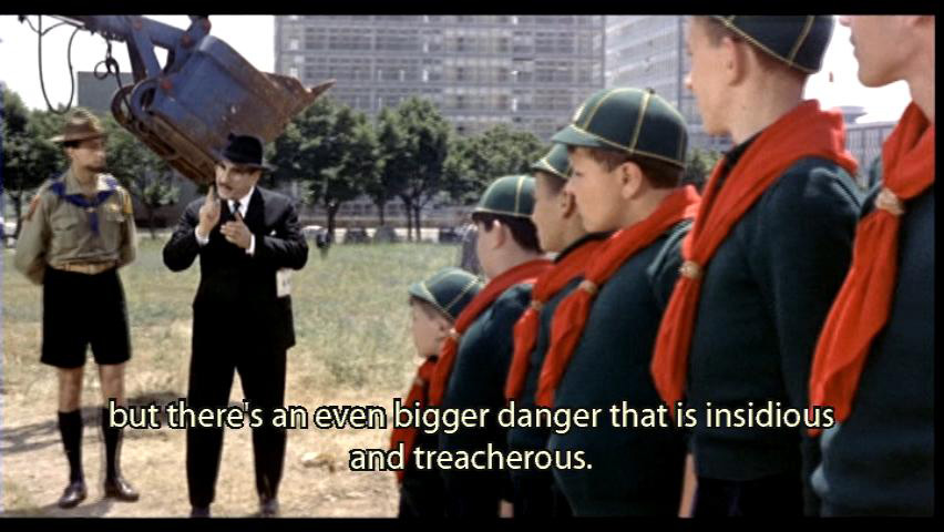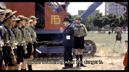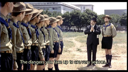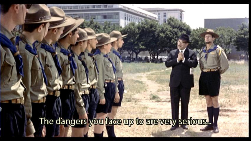 [Antonio] Thank you. The many dangers of the forests, the many dangers of the mountains, are indeed terrible dangers. But there are more terrible dangers still. More insidious. More double-faced. You are all wondering, I know, just what these terrible dangers are. I'm going to tell you a bit of an episode in my life in which I am humbly the protagonist. [Boyscout] The what? |