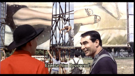 [Cleric] Say, is that a movie poster? [Workman] No, it's a milk ad.