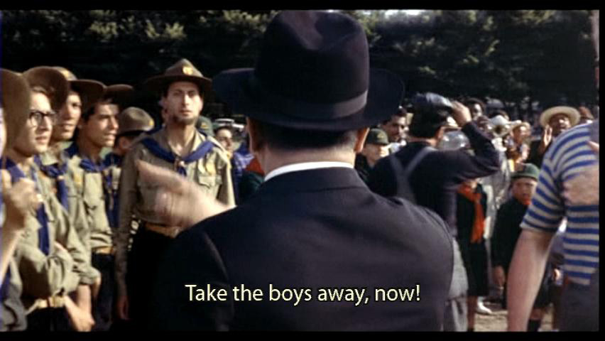 it out! Quit it! [Antonio] Take the boys away from here, immediately. [Scout Leader] Yes, sir! All right,