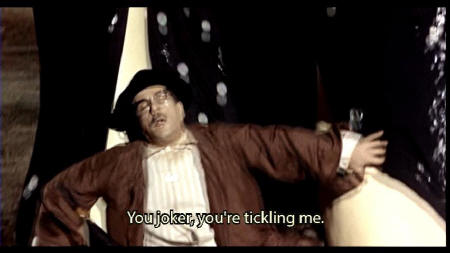 You joker, you're tickling me. Why are you afraid of me, Antonio? Ha ha ha ha. [Antonio] Go back to the poster! Go back to the poster, you witch! Go back to the ... [Anita] I've alive, Antonio! Alive! |