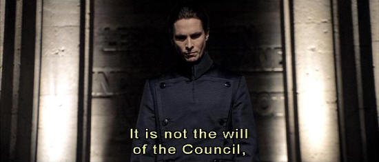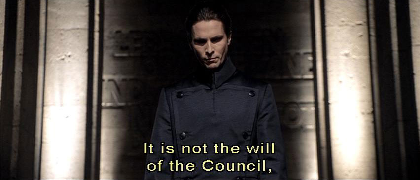 or incinerated without a trial. [Preston] But it's counter to law. You're a member of the Council. If -- [Dupont] It is not the will of the Council, it is the will of Father -- and he is law. [Preston] Sir ... without the logic of process, is it not just mayhem --