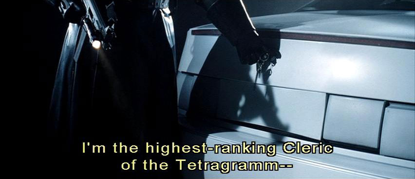 I'm not -- Captain, this is a waste of my time. My name is John Preston. I'm the highest-ranking Cleric of the Tetragramm -- [Tetragrammaton] Wait. Stand off.