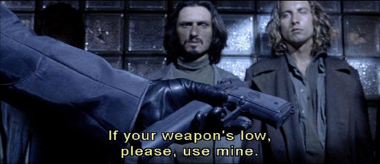 [Preston] They have valuable information. [Brandt] Cleric ... [Preston] They can be put to much better use. [Brandt] Cleric. If your weapon's low, please, use mine.