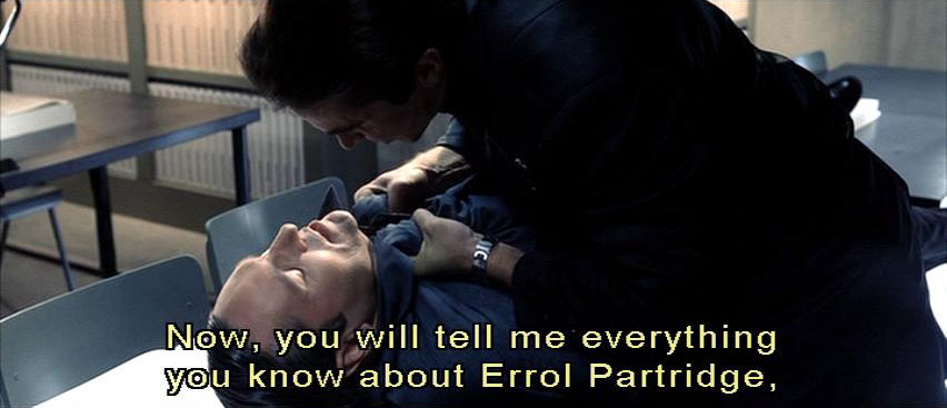 I'm gonna ask you one more time. Errol Partridge -- What do you know about him? [Librarian] I'm sure this must be some mis -- [Preston] You're an offender. [Preston] No? Then why are you so scared of me? Now, you will tell me everything you know about Errol Partridge, or I will have a wagon come to take you to the Hall of Destruction for summary combustion.