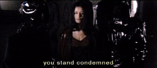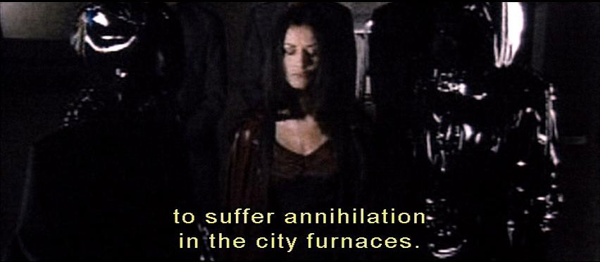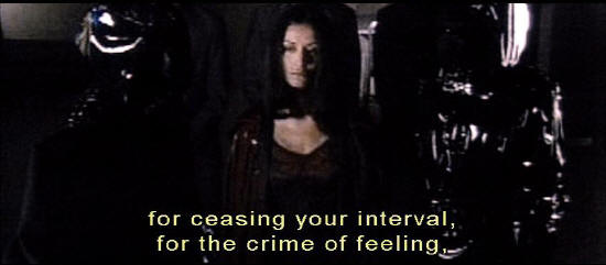 For ceasing your interval, for the crime of feeling, you stand condemned to suffer annihilation in the city furnaces. You will be taken there immediately and you will burn. [Man speaking indistinctly] |