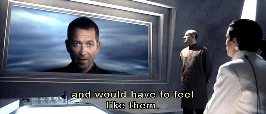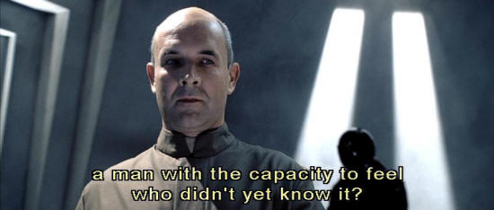 until it hit me -- in order to pass undetected into their midst, in order to be trusted by them, my provocateur would have to think like them and would have to feel like them. But where to find such a man -- a man with the capacity to feel who didn't yet know it? [Preston] But ...