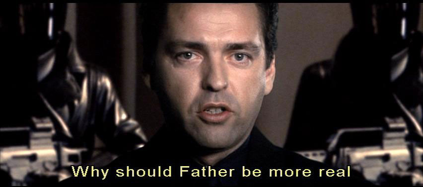 [Dupont] Don't look so surprised, Preston. Why should Father be more real than any other political puppet? The real Father died years ago. The Council simply elected me to pursue his paternal tradition. And you, Preston,