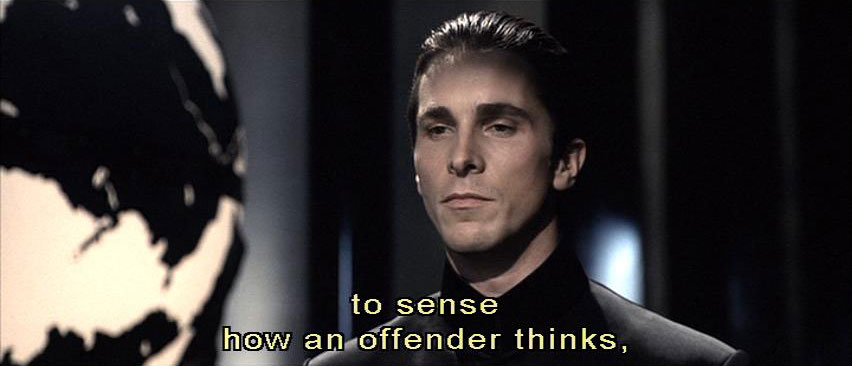 [Dupont] Why do you imagine that is, Cleric? [Preston] I'm not sure, Vice-Council. Somehow ... I'm able, on some level, to sense how an offender thinks, to ... put myself in their position. [Dupont] If you had ceased your interval,