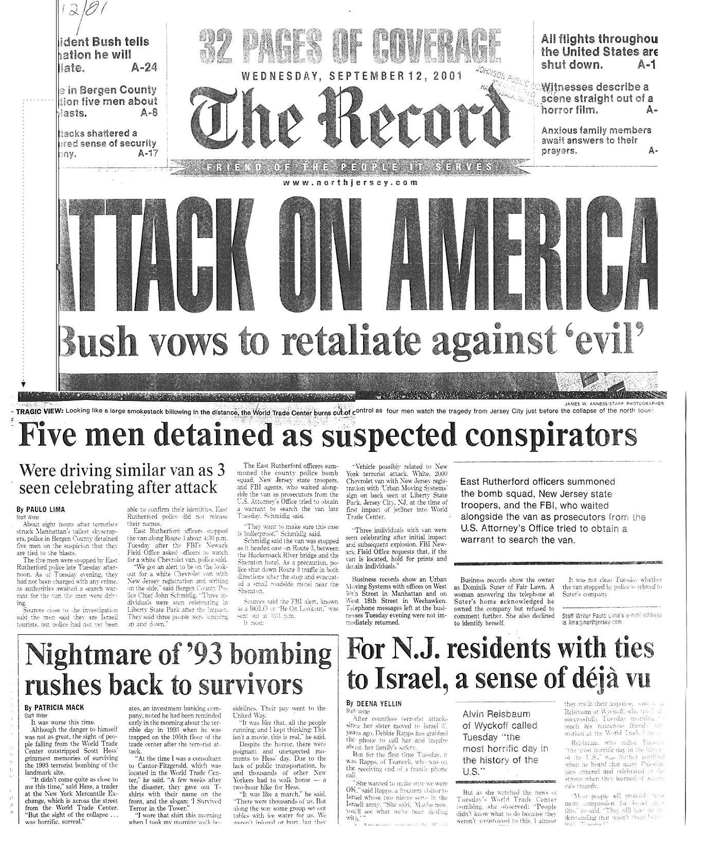 revealed. Here's what the Jerusalem Post reported on September 12, 2001: