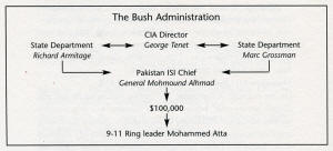 Federal News Service May 16, 2002, Thursday Q: Are you aware of the reports at the time that ISI chief was in Washington on September 11th, and on September 10th, $100,000 was wired from Pakistan to these groups here in this area? And why he was here? Was he meeting with you or anybody in the administration? MS. RICE: I have not seen that report, and he was certainly not meeting with me. Daniel Pearl Wall Street journal reporter Daniel Pearl was kidnapped in January of 2002 from Pakistani streets. His body was found in May, and at the same time the Pakistani police announced that they had a prime suspect in the case, Omar Saeed Sheikh. He is variously known also by the names Ahmad Umar Sheik, Ahmad Omar Saeed Sheikh, and Umar Sheikh. He was raised and educated in London, and, by whatever name he is known, it has been acknowledged that he was an ISI agent. When the Times of India revealed that by examining his cell phone records (obtained through Indian intelligence services) they could prove that he was the leg man who had wired $100,000 to Mohammed Atta in Florida just days before the attacks, they did nor know that he was going to be arrested and convicted for the murder of Pearl. It was the cell phone records, among other things, that tied Sheikh directly to the ISI. 29 And before his link to ISI Chief General Ahmad became known and corroborated by major US papers, the American press had been setting him up as the number one al Qaeda bag-man. The ISI connection changed all that and became a liability for the US government. Paul Thompson's timeline contains a compelling entry on the case that could have proven devastating for the CIA had the dots been connected properly. September 8-11, 2001 (C): Saeed Sheikh transfers money from the United Arab Emirates to Atta in Florida on September 8 and 9 (the United Arab Emirates is known for lax banking laws and has no law against money laundering [State Department briefing, 7/8/99]). On September 9, three hijackers, Atta, Walid Alshehri, and Marwan Alshehhi, transfer about $15,000 back to Saeed's account. [Time, 10/1/01; Los Angeles Times, 10/20/01] Apparently the hijackers are returning money meant for the 9/11 attacks that they didn't use. Saeed then flies from the United Arab Emirates to Karachi, Pakistan, on 9/11. These last minute transfers are touted as the "smoking gun" proving al-Qaeda involvement in the 9/11 attacks, since Saeed is a known financial manager for bin Laden. [Guardian, 10/1/01] 30 With so much damning evidence stacking up to suggest that the CIA had actually helped to finance the 9/11 attacks, there was nothing left for the mainstream press to do but engage in a game of confusion. Instead of asking the questions that should have been asked, the media confused the issue by describing the same man in his roles as ISI agent and bin Laden bagman under many different names and by attempting to insert another individual into the mix. Researcher Chaim Kupferberg documented the major media's name game in trying to confuse Sheikh's identity with another man, bin Laden's brother-in-law. Kupferberg meticulously pulled apart about two dozen mainstream press reports and demonstrated deceptive reporting in attempts to conceal Sheik's identity by attributing acts originally been reported as Sheikh's to another person entirely. 31 After Sheik's conviction for Pearl's murder in July 2002, other revelations showed that Pearl had maintained fairly close relationships with the CIA. One report indicated that Pearl was involved in passing a hard-drive from an al Qaeda laptop computer to the CIA. Another quoted former CIA case officer Robert Baer as saying, "I was working with Pearl." Baer stated in the story that he had been encouraging Pearl to investigate the CIA's top operational suspect in the attacks, Khalid Shaikh Mohammed. 32 Abandoning the tortuous logic of trying to rationalize actions indicating guilty knowledge and cover-up, it is appropriate to ask if Pearl was really investigating the hottest 9/11 story around. Was Pearl investigating the ISI? At least two sources say yes. Kupferberg wrote: Tariq Ali of the Guardian reported on April 5, 2002: 'Those he [Pearl] was in touch with say he was working to uncover links between the intelligence services and terrorism. His newspaper has been remarkably coy, refusing to disclose the leads Pearl was pursuing.' 33 And in the spring of 2002 I interviewed an international attorney just returning from several months of work in Pakistan. Because he has ongoing business in Pakistan I cannot name him here, but I can tell you what he said. "Oh, there's no doubt about it. It was common knowledge on the streets. Pearl was investigating the ISI." |