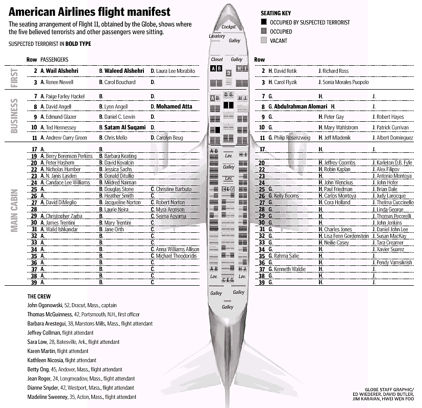 11) Satam M.A. Al Suqami, AA11, North Tower WTC. Name not on passenger