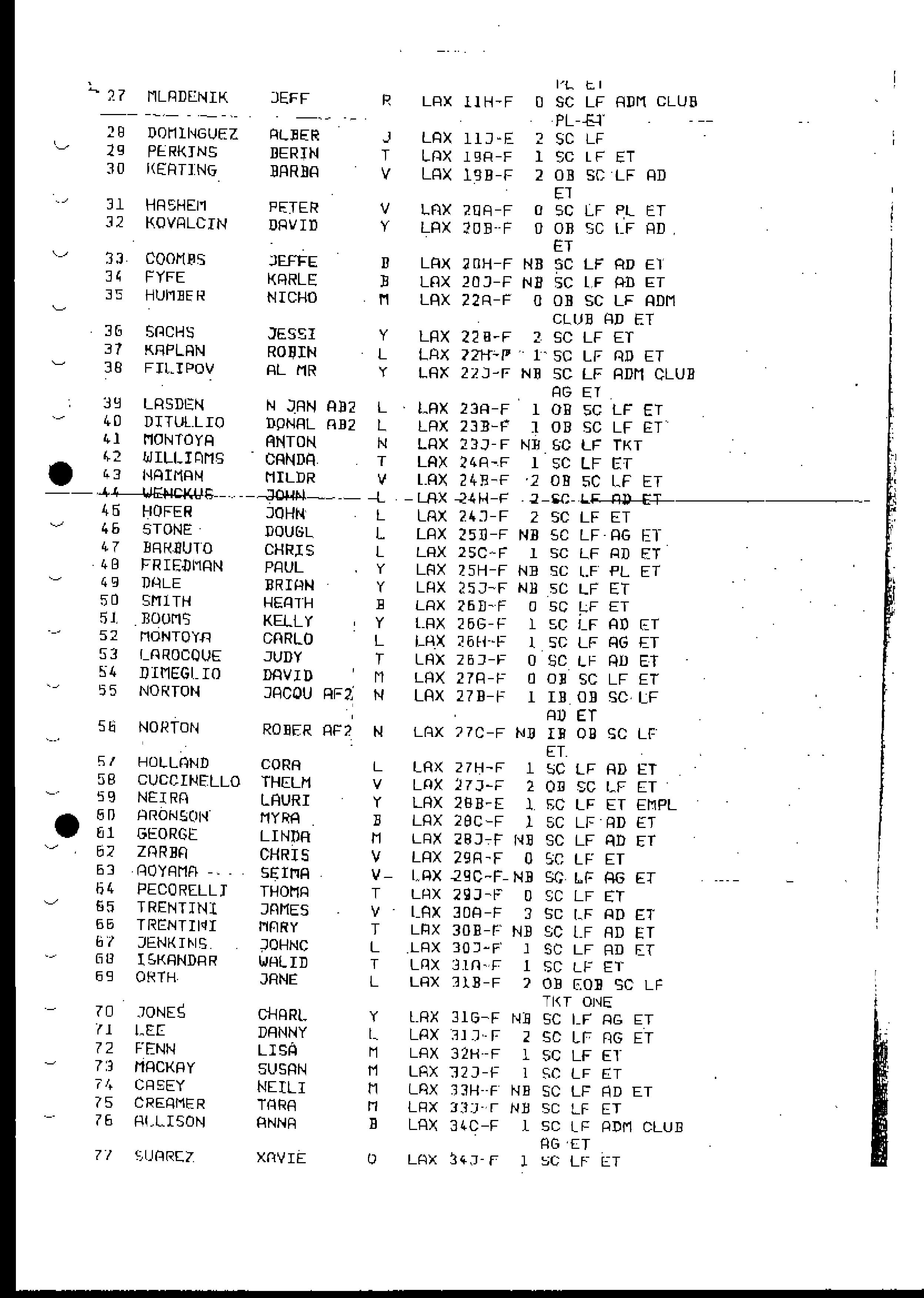 passenger list.