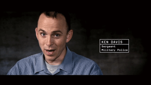 [KEN DAVIS, SERGEANT MILITARY POLICE] It's not like they were trying to hide anything. And that's what stands out to me. Because if you know you're doing something wrong, dead wrong, you're going to hide it. You're going to do your best to conceal it so that people who know better don't see it. As I walk in, here's a guy in his black P.T. shorts and T-shirt and shower shoes, and there's another guy off just with his pants and his shirt. Each one had a naked detainee Someone says, "We're MI, we know what we're doing." And I'm like, "Okay." You know, because I had no idea, they're not wearing rank, I don't know what rank these people are. Then they'll put their handcuffs above their heads and stretch them out that way, and stretch them out long, and then they started handcuffing them together. And the whole time they're yelling "Confess! Confess! Confess! You know you did it! Tell us what you did! Confess!" Then they start handcuffing them into what seem to be simulated sexual positions. And I'm just like, I thought I had missed something. Come to find out, what's going on is these guys were accused of raping a teenager inside the jail. No military intelligence value Cruz is yelling at him, "Get undressed! Get undressed!" Then the guy's like "No, mister, no!" So after they're undressed they throw water down on the floor and they make them low-crawl, make him try to drag his genitals onto the concrete. And I'm like, "What is going on here?" I said, "Is this the way you all interrogate people?" And he goes, "There's lots of different ways we interrogate people. So I said, "I had enough." And I left. The next morning, the lieutenant's right out back and I said, "Sir, Military Intelligence over at the Hard Site, they are doing some pretty weird things with those detainees." He told me I had no business being over there. And he also told me, "Stay out of MI's way and let them do their job." [ROMAN KROL, MILITARY INTELLIGENCE INTERROGATOR] Okay, on the right, in black trunks, is Cruz.