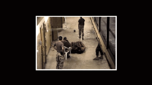 To show the spectators this would be done to anybody who breaks the rules. Abu Ghraib was mortared almost every day. Our people were dying there, so my frustration level was really high, and when I heard about the detainees that raped the little boy, I just completely went nuts. Right before I left I was so pissed off that I had a bottle of water ,and I splashed some of them just to show, pretty much, my hate. At one point there was a nerf ball brought in. Everybody was throwing to each other, playing catch. Here, I'm going to get it.
