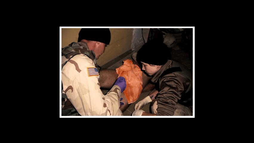 It was teeth marks that looked something like this. One of our medics came and he taught me how to give stitches. It was kind of fun, but I felt horrible for this guy. The dogs should have never been there.