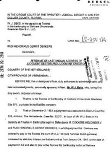 Protected by the FAA. Numerous serious violations, which would have grounded anyone else, were ignored by the FAA. The question is why.. A wanted man. As a result of criminal activates in his native Holland, including skipping out on hundreds of thousands of dollars worth of judgments, Dekkers is unable to return there. High tech smuggling. Using dummy `front' companies, Dekkers was caught, but never charged, with smuggling high technology components out of the U.S. by a multi-agency investigation in the mid-90's. |