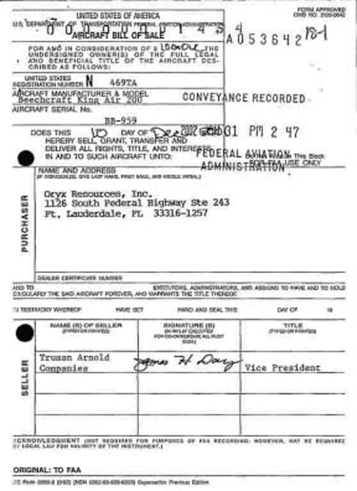 Boxes within boxes: Hilliard and Dekkers' brief-lived commuter airline, Florida Air, wasn't really Florida Air, but Sunrise Air, of Nevada, which wasn't really Sunrise Air, but Express Air of Utah, which was really Express Air of Page, Arizona. Unfit to fly. The Dept of Transportation regularly found Hilliard's various airline ventures to be dubious propositions. Stripping assets: The assets of an Orlando flight school were concealed inside Discover Air and transferred to Hilliard just before the flight school went bankrupt, taking with it the life savings of several hundred students. Friends in high places: Hilliard `bought' a plane from Truman Arnold, former chief Clinton fundraiser, but didn't arrange financing to pay for it until over a year later `The Company he keeps' pt II: Hilliard and Dekkers partner in Florida Air was Richard Boehlke, a participant in the spectacular $350 million "Mob-led" bust-out of union pension funds in Portland, Oregon, of what were called "mostly Mob-led unions." Packets of heroin bearing the name of Osama bin Laden.