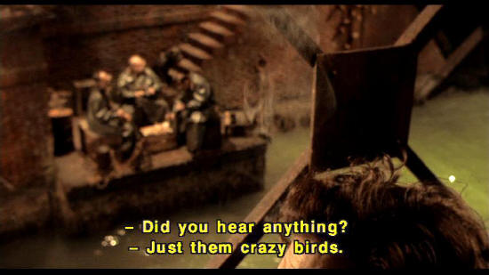 [Killer] Did you hear anything? [Bogdan] Just them crazy birds.