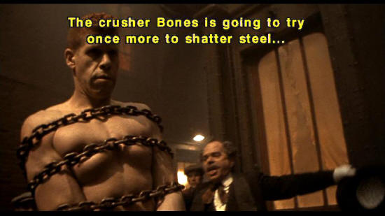 Help us build a better world. [Montruer] The crusher Bones is going to try once more to shatter steel only using the power of his mighty arms. Please, ladies and gentlemen, I want absolute silence effets speciaux: YVES DOMENJOUD, JEAN BAPTISTE BONETTO, OLIVIER GLEYZE, JEAN-CHRISTOPHE SPADACCINI