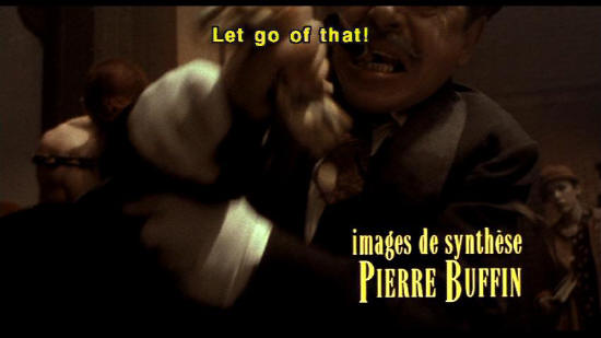 Little thief! Stealing money from orphans. I'll teach you! effets speciaux numeriques: PITOF Let go of that! images de synthese: PIERRE BUFFIN