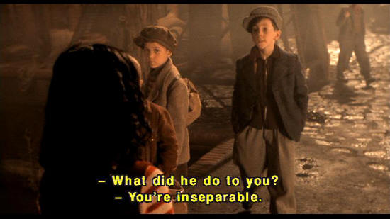 [Jeannot] What did he do to you? [Bouteille] You're inseparable.