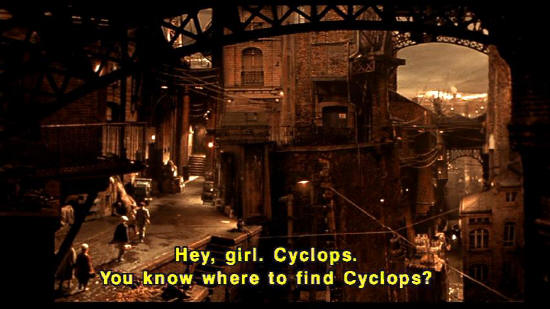 [One] Hey, girl. Cyclops. You know where to find Cyclops?