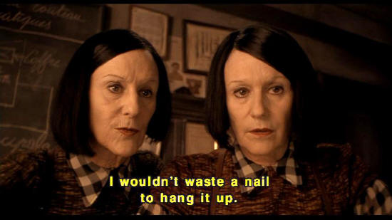 I wouldn't waste a nail to hang it up. [Jeannot] But it's pretty, isn't it? [La Pieuvre] Don't get smart with us. The picklock won't always be there to save your behind.