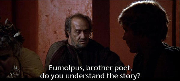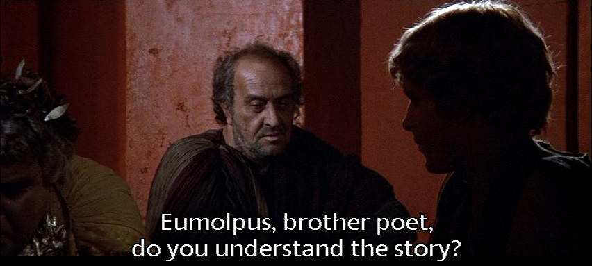 [Trimalcione] Eumolpus, brother poet, do you understand the story?
