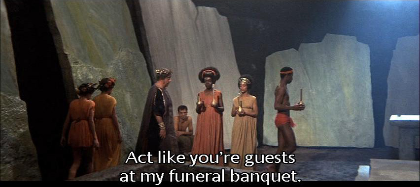 [Trimalchio] Act like you're guests at my funeral banquet.