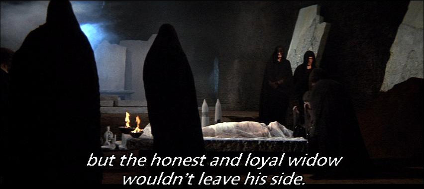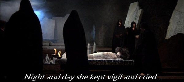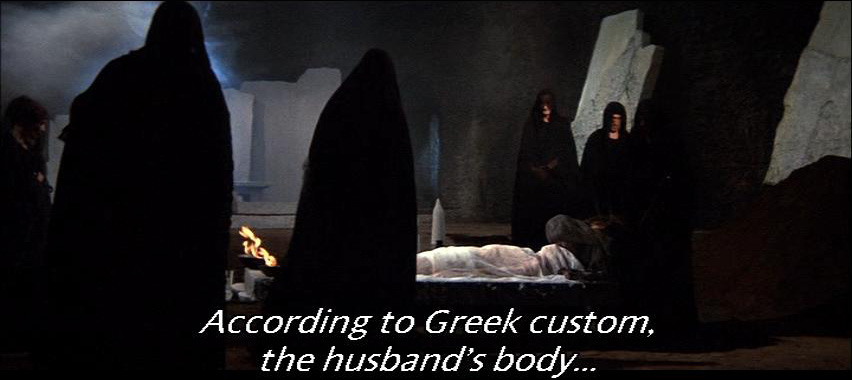 According to Greek custom, the husband's body ... was placed in the crypt ... but the honest and loyal widow wouldn't leave his side. Night and day she kept vigil and cried ... |