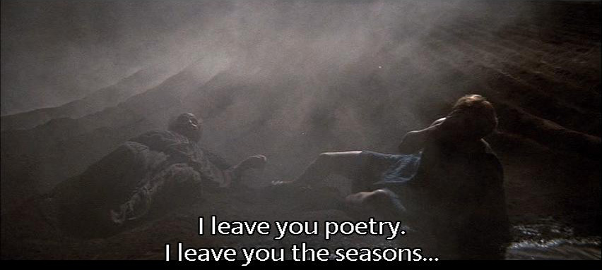 What can I say? If I were as rich as Trimalchio, I'd leave you some land or a ship. But I can only leave you what I had myself. I leave you poetry. I leave you the seasons ... especially spring and summer ... |