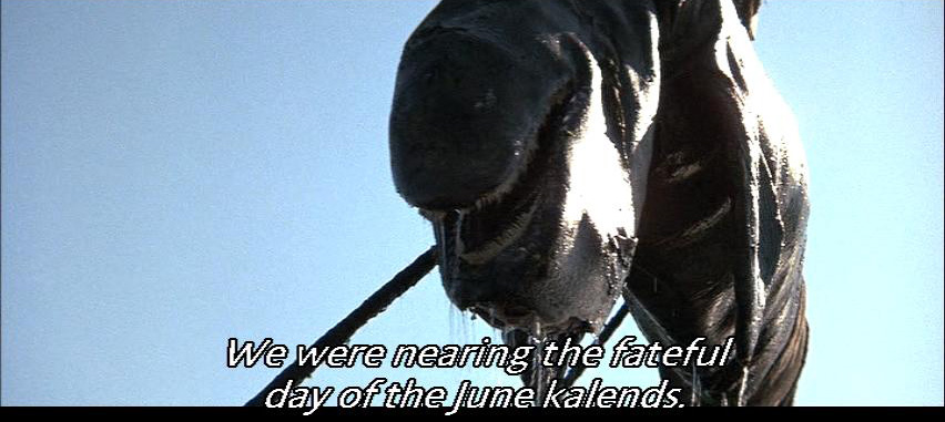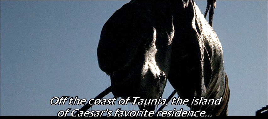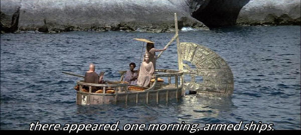 [Encolpius] But our good fortune didn't last for long. We were nearing the fateful day of the June kalends. Off the coast of Taunia, the island of Caesar's favorite residence ... there appeared, one morning, armed ships. |