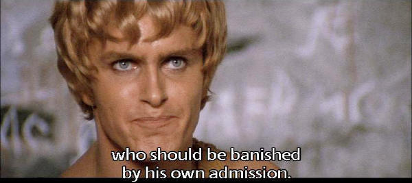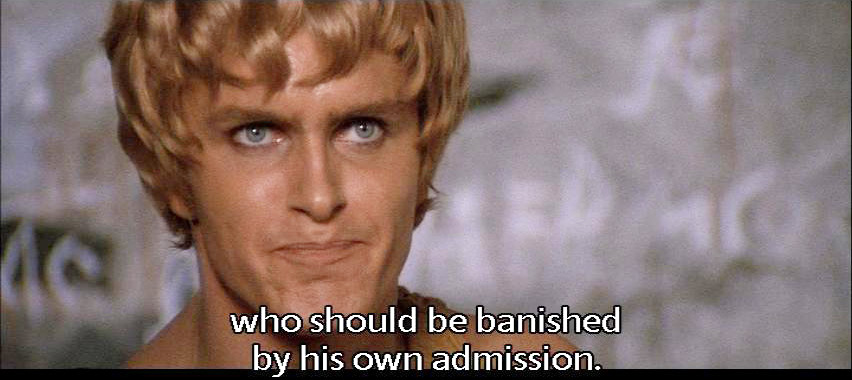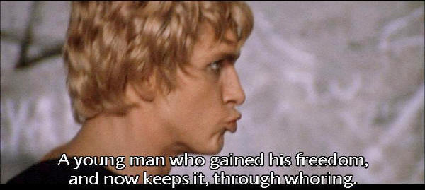 Someone who bears the mark of all known vices ... who should be banished by his own admission. Ascyltus! A young man who gained his freedom, and now keeps it, through whoring. |